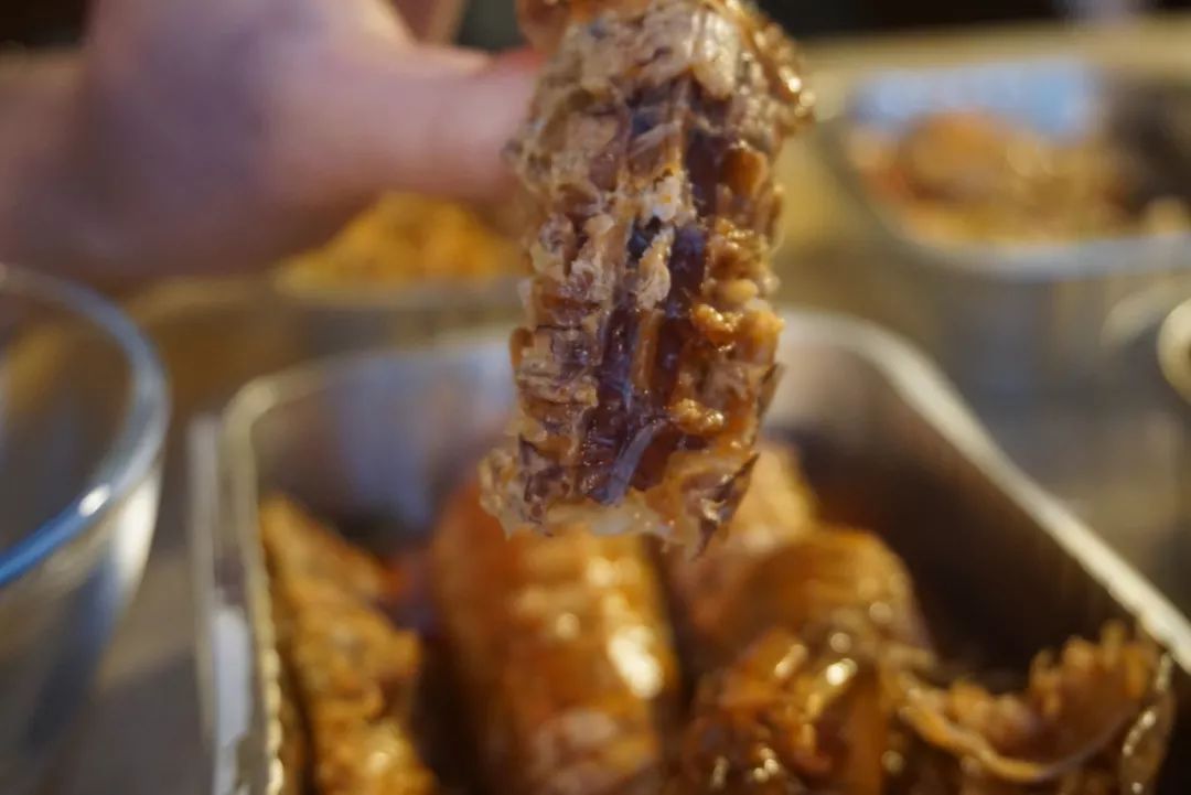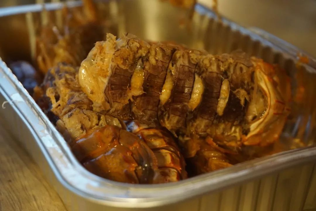 咬一口感覺蠻q彈,肉質緊實有彈性,一節節的蝦肉入口鮮香還有帶有海鮮特有的纖維感,越嚼越香。