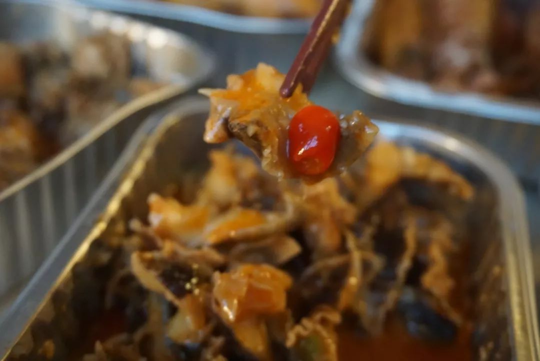 本場測評的最后一款黃金鮑肉,本來大家已經吃的半飽了,但嘗了一口后紛紛又把筷子伸向了碗里。