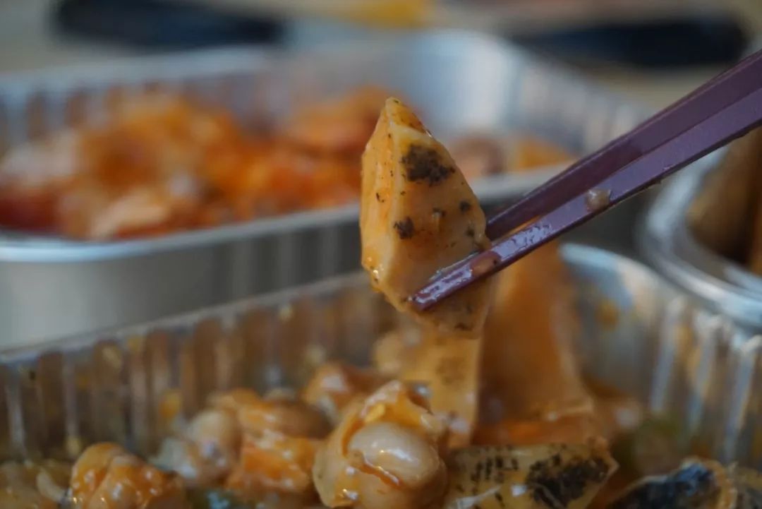裹著湯汁的魷魚咬起來嘎嘣脆,一口一個的停不下來。